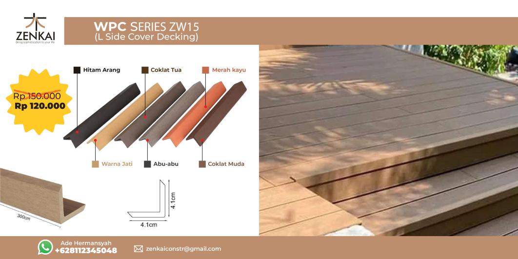 Wood Plastic Composite (WPC) adalah material yang terbuat dari campuran serbuk kayu dan plastik, yang biasanya digunakan dalam berbagai aplikasi outdoor karena sifatnya yang tahan lama, mudah dibentuk, dan tahan terhadap kelembaban.