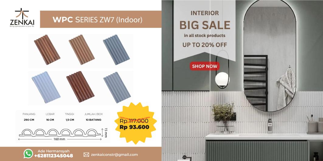 Wood Plastic Composite (WPC) adalah material yang terbuat dari campuran serbuk kayu dan plastik, yang biasanya digunakan dalam berbagai aplikasi indoor karena sifatnya yang tahan lama, mudah dibentuk, dan tahan terhadap kelembaban.