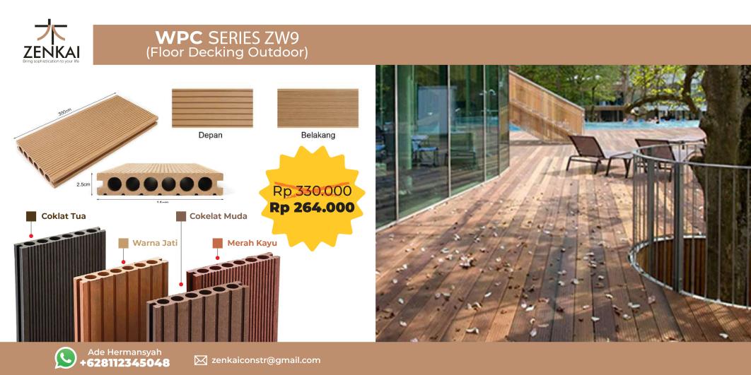 Wood Plastic Composite (WPC) adalah material yang terbuat dari campuran serbuk kayu dan plastik, yang biasanya digunakan dalam berbagai aplikasi outdoor karena sifatnya yang tahan lama, mudah dibentuk, dan tahan terhadap kelembaban.